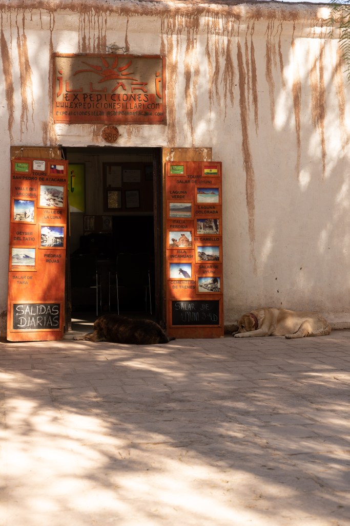 Czas na nasz pierwszy nocleg w San Pedro de Atacama. Chilijskie miasteczko pośrodku niczego. Według niektórych wioska – w końcu na nasze europejskie standardy odczucia mogą być dwojakie. Ja pozostaję przy tym pierwszym. Spotykałam się z surowymi opiniami na temat tego miejsca, w końcu wszechobecny kurz i zdecydowanie ubogie otoczenie może stwarzać takie wrażenie. Dla mnie to miejsce w pewien sposób stanowiło delikatny wstęp przed podróżą przez o wielokroć brzydsze miejsca, pełne łamiącej serce bezdomności psów i kotów, pstrokatych i brudnych budynków, jeszcze większej biedy i większej ilości kurzu. Moim zdaniem od tej pory ten widok stanowił standard na drodze mijanych miasteczek i wiosek, a piękne i czyste miejsca, pełne inkaskiej architektury i innych pozostałości tejże cywilizacji znanych z sieci i broszur podróżniczych, będą zdecydowanym wyjątkiem aniżeli regułą. Z tym należy się niestety pogodzić i patrząc przez ten pryzmat spłycić swoje wymagania.