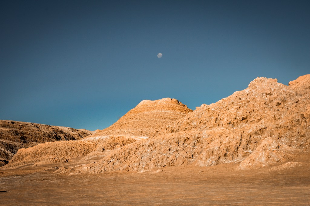Czas na kolejny przystanek w trakcie naszej chilijskiej podróży. Tym razem opuścimy na moment nasz glob, choć rzecz jasna tylko w przenośni. Valla de la Luna, czyli Dolina Księżycowa. Często nazwy miejsc rodzą w naszej głowie błędne wyobrażenia, które w zderzeniu z rzeczywistością przynoszą rozczarowanie. Jednak nie tym razem. Dolina Księżycowa to nazwa w pełni adekwatna do miejsca. Ze względu na skaliste formacje i puste przestrzenie, dolina w pełni przypomina powierzchnię naszego naturalnego ziemskiego satelity.