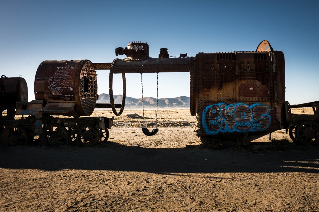Rankiem szybko przemknęliśmy do samochodu, który okazały się być znacznie cieplejszy od naszego pokoju hotelowego. Zaaferowana nadchodzącą eksploracją Salar de Uyuni nie uwieczniłam samego Uyuni na żadnym ze zdjęć. Śmieci rozrzucone po drogach i bezdomne psiaki biegające wzdłuż ulic – to wszystko co zdołałam spamiętać. Takie widoki towarzyszyły nam aż po sam przystanek na cmentarzysku lokomotyw – miejscu zasługującym na miano conajmniej intrygującego.