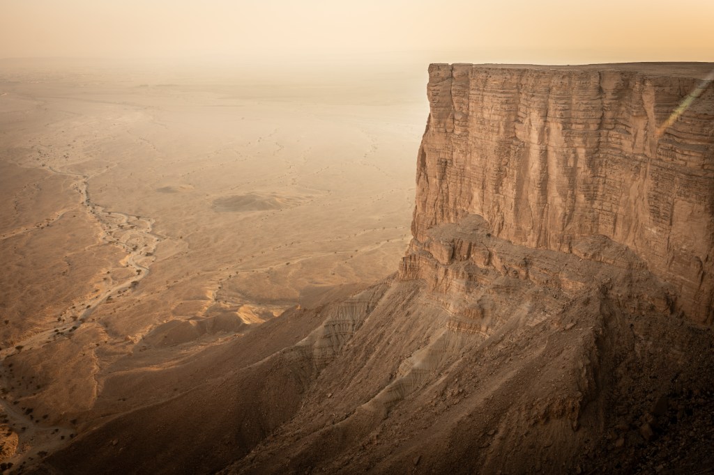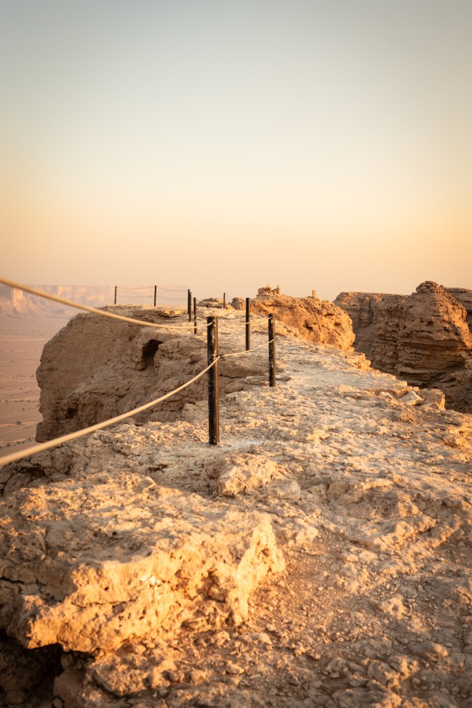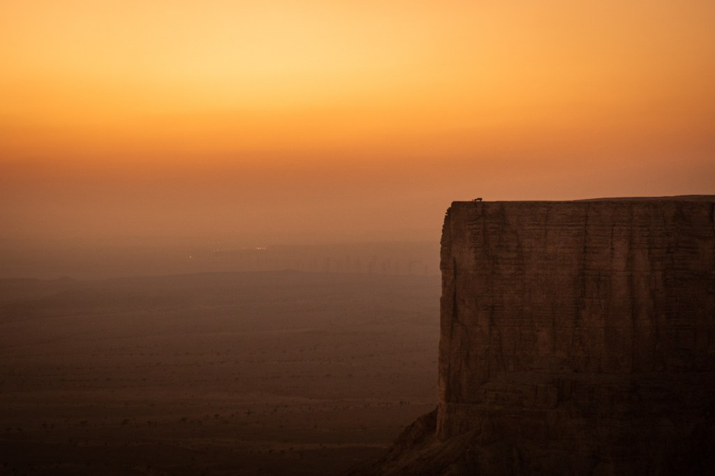 Na miejscu czekał widok, który zapierał dech w piersiach – krawędź klifu dramatycznie opadająca w dół i bezkres pustyni, który zdawał się sięgać dalej niż wzrok. Zawsze, gdy stoję w takich miejscach – na islandzkich pustkowiach, pustyni Atakama, boliwijskich bezdrożach czy szczytach Alp – wydaje mi się, że piękno tego świata musi mieć swój limit. Że w końcu natrafię na coś, co nie zrobi już na mnie wrażenia. Ale za każdym razem natura przypomina mi, jak bardzo się mylę. Świat jest nieskończony w swoim pięknie. I Skraj Tuwaiq jest tego najlepszym przykładem.